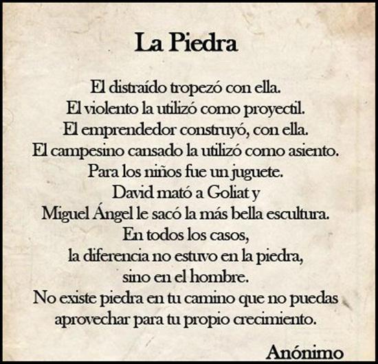 15.02.2014 03:13"No existe piedra en tu camino que no puedas aprovechar para tu propio crecimiento"